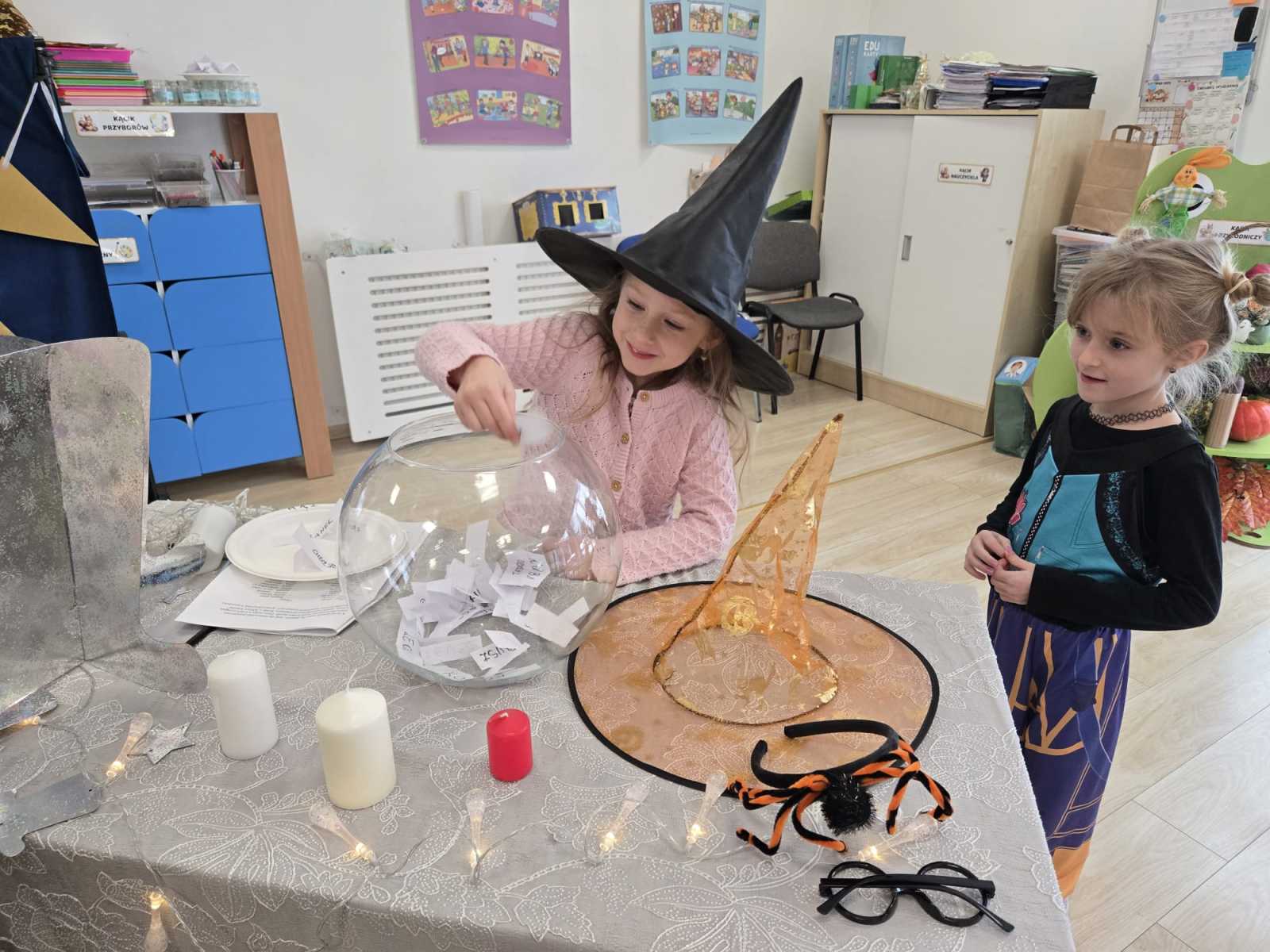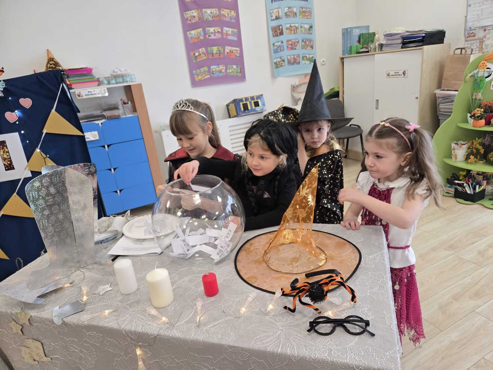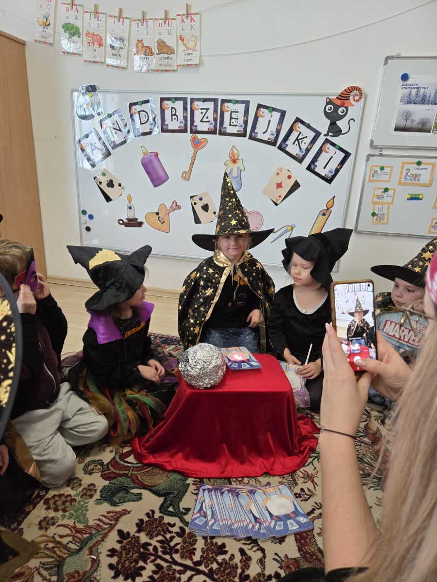 W salach pojawiły się andrzejkowe stanowiska z wróżbami – dzieci lały wosk 🕯️, losowały magiczne bileciki z przepowiedniami ✉️✨ oraz odkrywały, co kryje przyszłość 🔍💫. Nie zabrakło również wesołych zabaw i tańców przy ulubionej muzyce 🎶💃🕺, które porwały do wspólnej zabawy wszystkich małych uczestników.