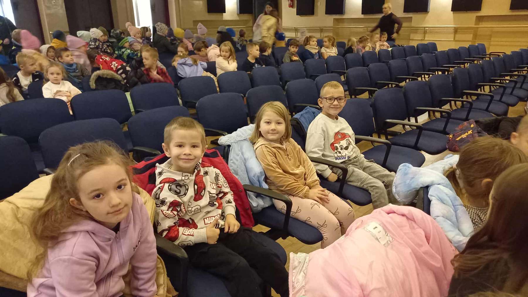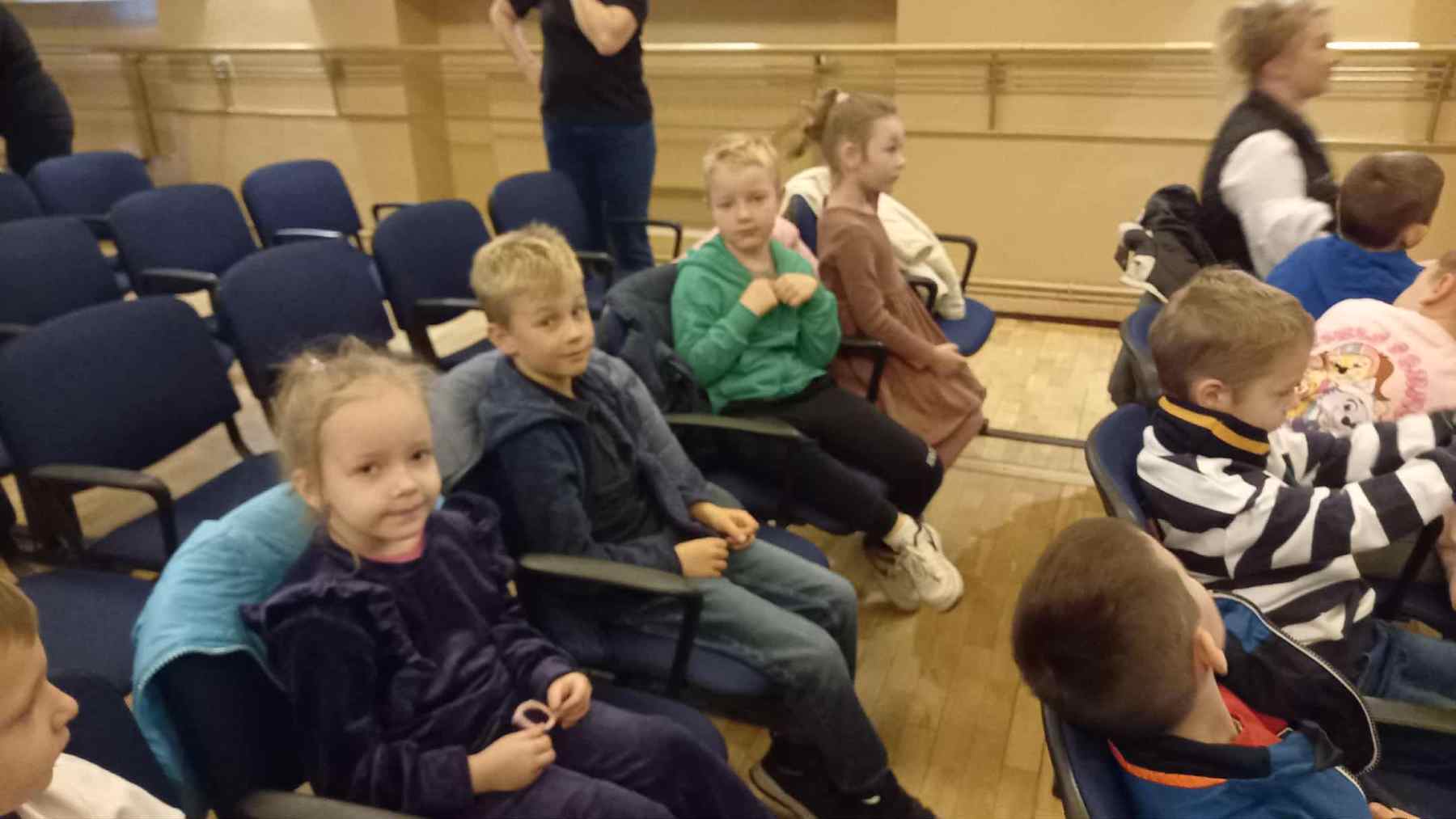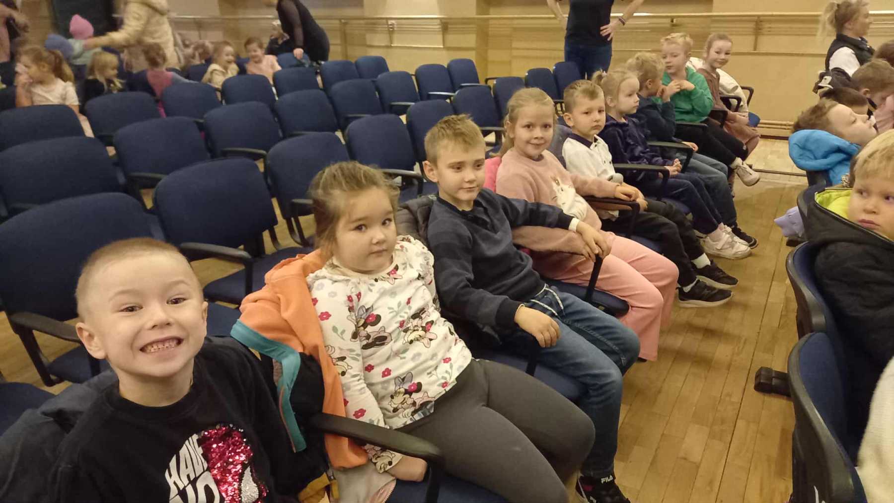 Dziś grupy Wiewiórki 🐿, Muchomorki 🍄 i Jeżyki 🦔 wybrały się do Miejskiego Centrum Kultury w Żywcu na spektakl muzyczny pt. „Królestwo Małych Serc” 😊.