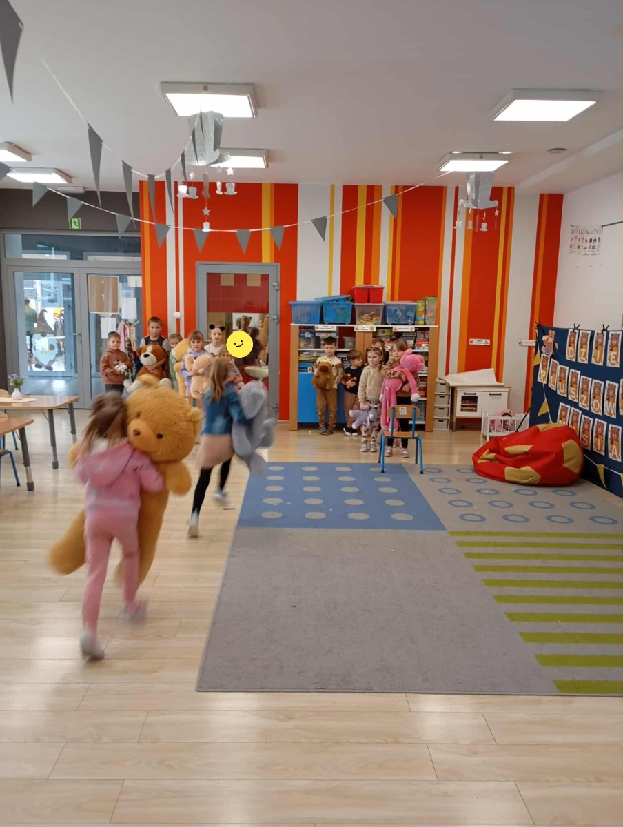W naszym przedszkolu 25 listopada obchodziliśmy Dzień Pluszowego Misia– wyjątkowe święto, które co roku sprawia dzieciom mnóstwo radości. Tego dnia każde dziecko przyniosło swojego ukochanego pluszowego misia, aby wspólnie świętować i bawić się z przyjaciółmi.